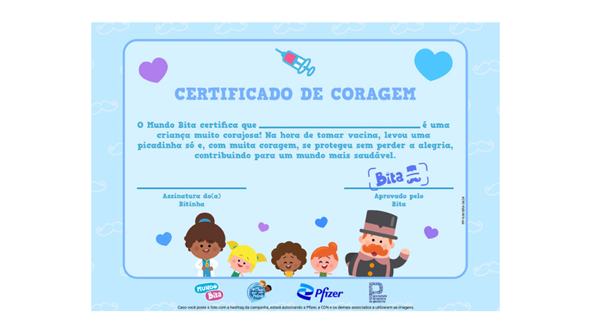 Gerar uma conexão com pais de crianças em idade de receber vacinas. Em uma parceria inédita com o Mundo Bita, canal favorito de crianças no Brasil, lançamos a música Hora de Tomar Vacina, que conquistou o público. Também criamos o Certificado de Coragem, disponibilizado para download, mantendo o foco na mensagem sobre a importância da vacinação infantil.